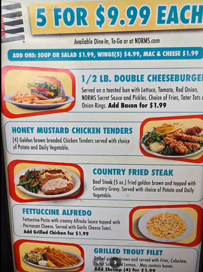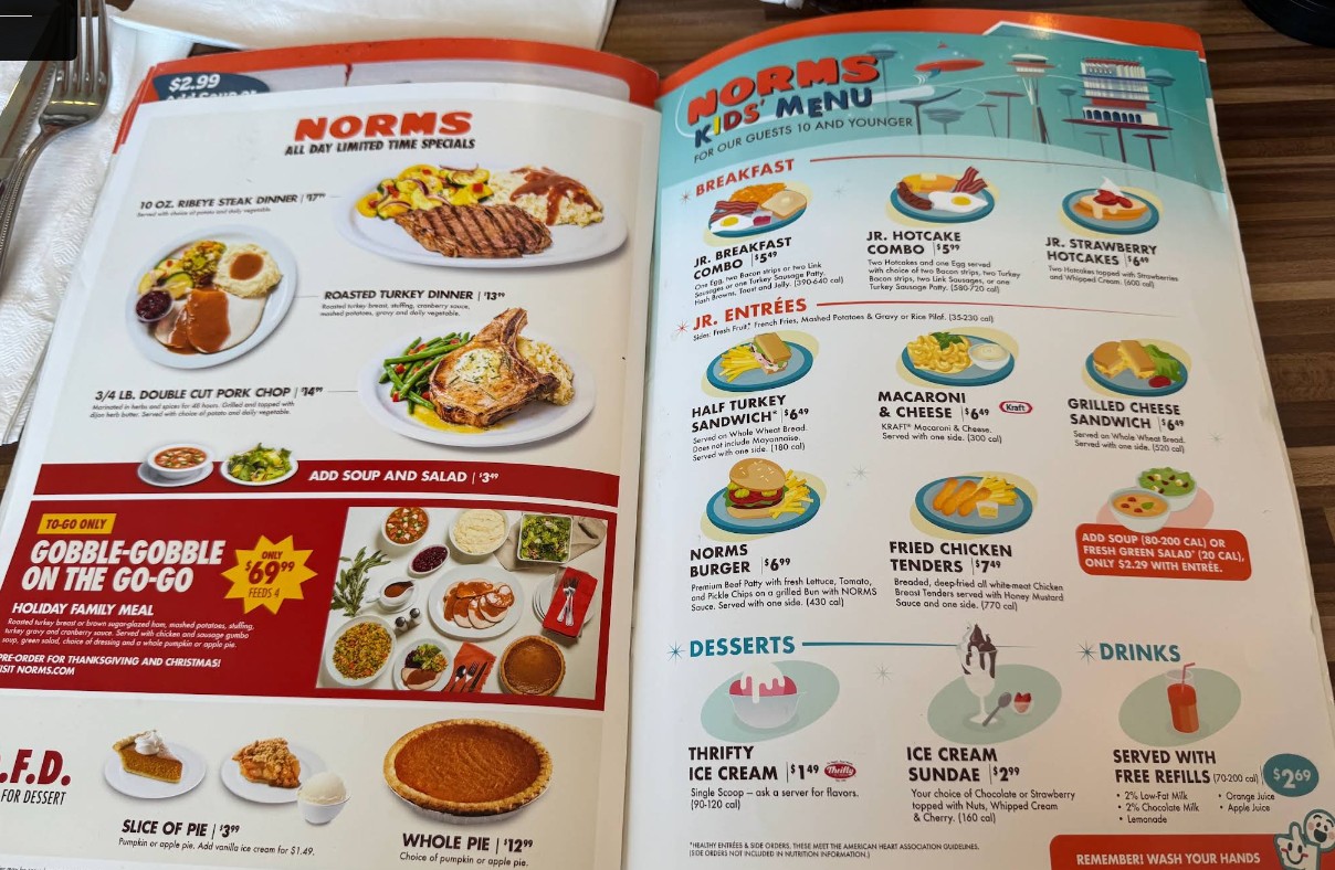 At NORMS Restaurant, we serve up the best of classic American diner fare 24/7, right here in West Hollywood, CA. Our restaurant menu features hearty meals for breakfast, lunch, and dinner, from fluffy pancakes and crispy bacon to juicy burgers and comforting sides. Whether you're craving a quick meal or enjoying a relaxed dining experience, NORMS is the perfect spot for delicious food at any time of the day or night. Visit us today for classic comfort food served with a smile, available for dine-in, takeout, or delivery!