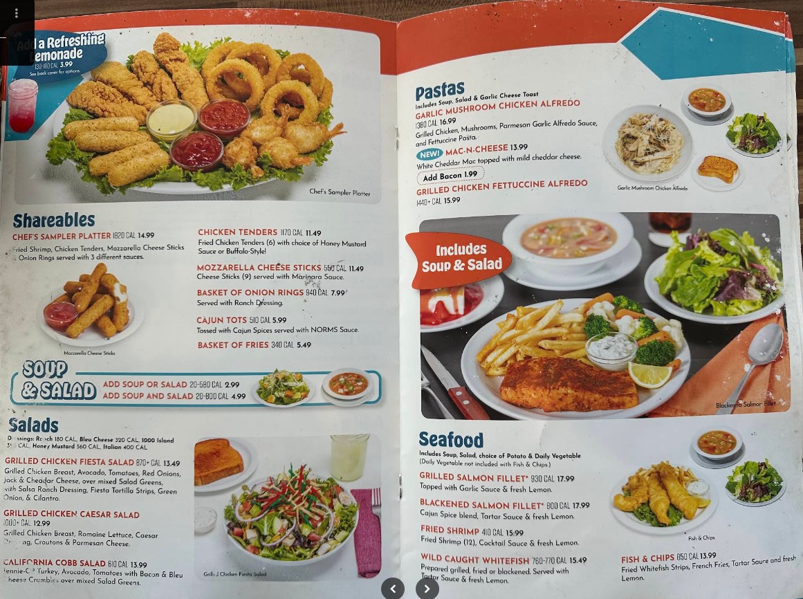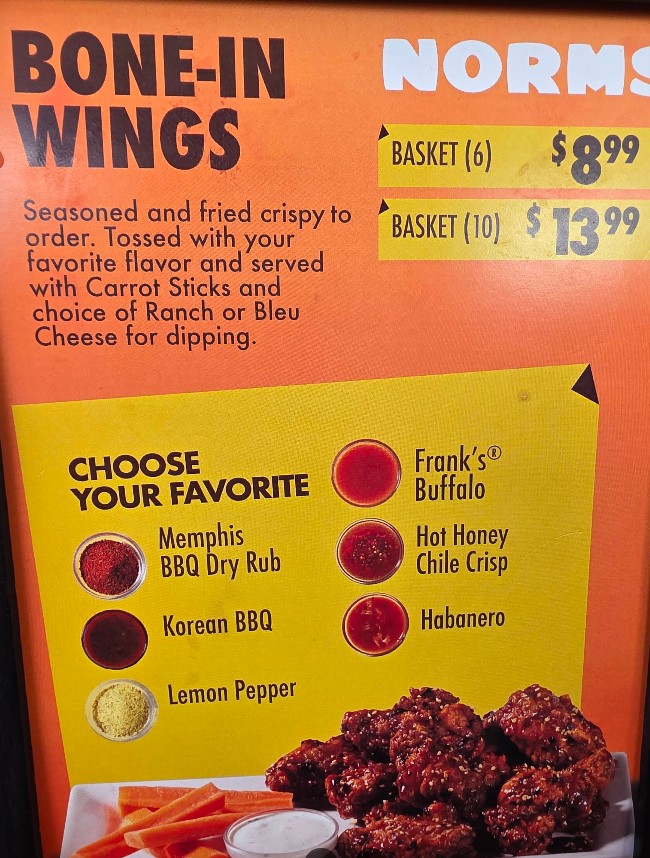 I’ve never visited a Norms although my wife visited the original restaurant many many years ago. We were greeted by friendly staff and our server was phenomenal. They were extremely busy and a staff member down but she worked like I’ve never seen before. The food is best described as comfort food. I wanted the combo as I love ribs and burnt ends. Both of these were really good. I opted for the buffalo sauce on the wings which was very tasty but a little salty. I understand that in ‘merica they put salt on a lot but it felt a little too much, but not enough to ruin the meal. All in all a very good value meal which was better than what I’ve paid over 50% more for on this trip.