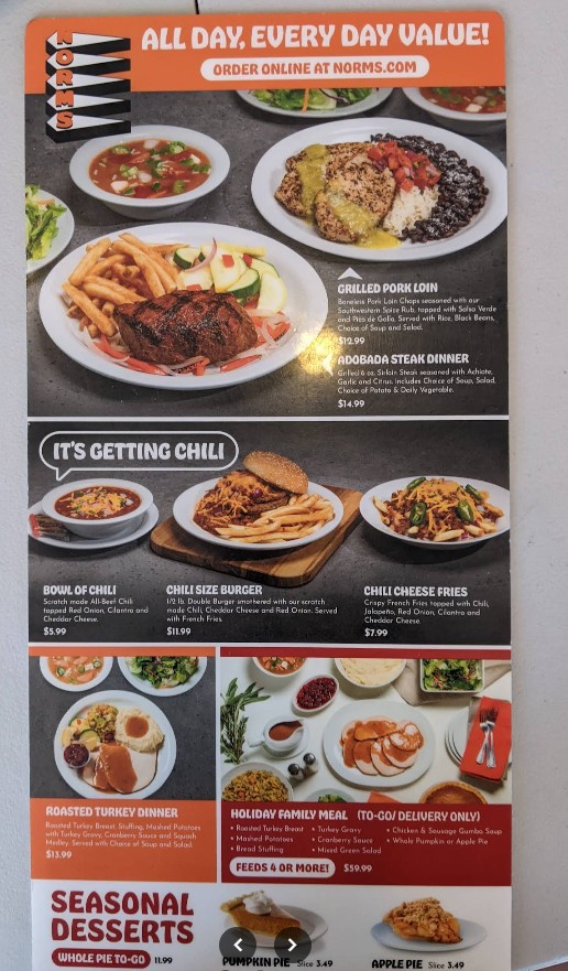 NORMS Restaurant is open on Monday, Tuesday, Wednesday, Thursday, Friday, Saturday and Sunday from Open 24 hours - Open 24 hours.